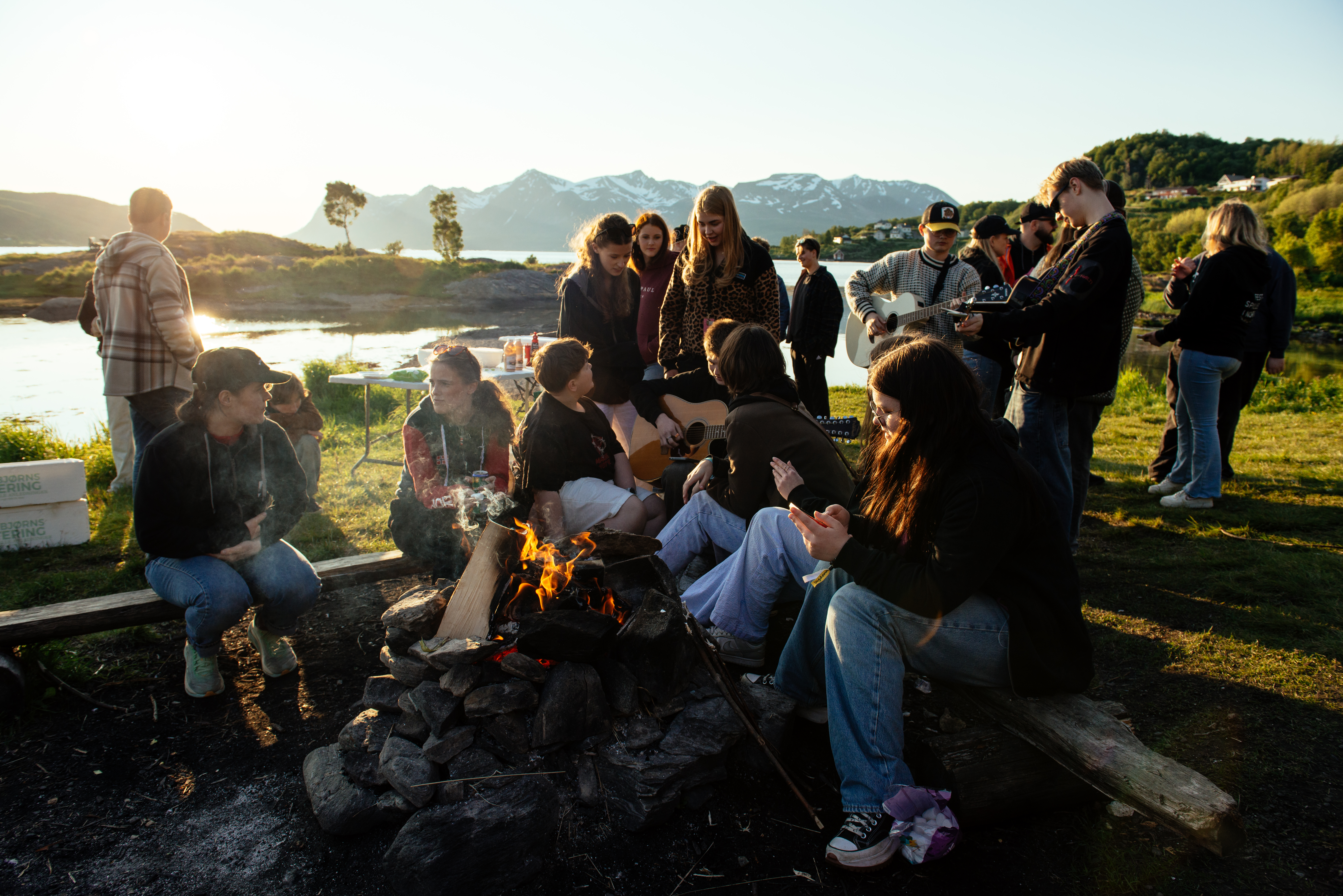 Det blir ulike bli-kjent-aktiviteter, musikk rundt bålet og gode samtaler mens kvelden blir lysere over havet. Kanskje dukker det opp noen med gitar, kanskje oppstår det en liten minikonsert med noen av deltakerne – uansett blir det garantert en stemningsfull kveld med bål og bølgeskvulp.