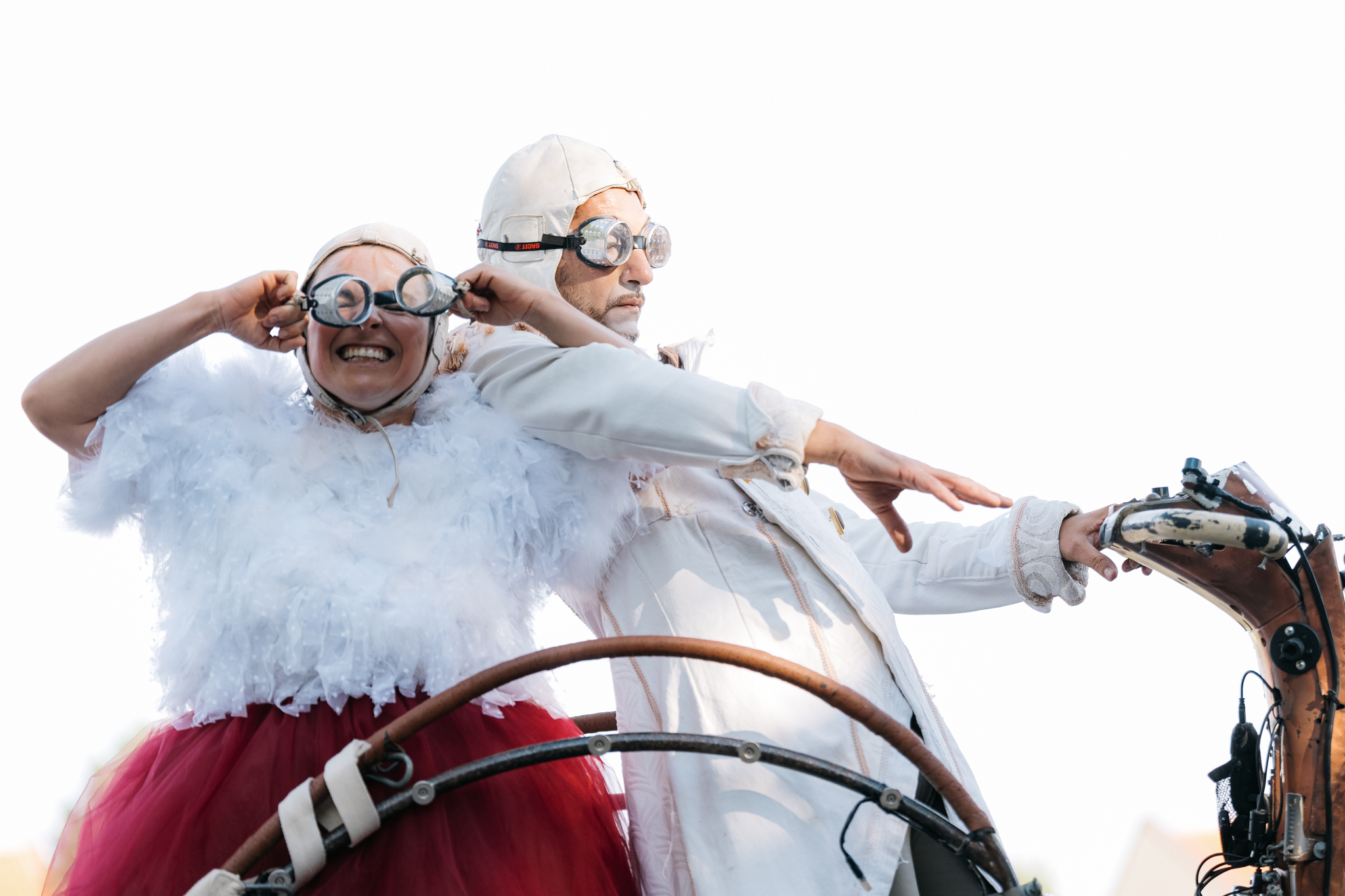 To skikkelser dukker opp som om de har reist langt. Kanskje i dagevis, kanskje i årevis. Med frontlykter fra en Vespa, styre fra en elsparkesykkel, et rullende tredemøllebånd og finurlige lysmekanismer bygger de et eget univers midt i byrommet. WOOW! er en surrealistisk og nonverbal forestilling der fysisk presisjon møter leken fantasi, og hvor publikum raskt trekkes inn i et felles «woow».